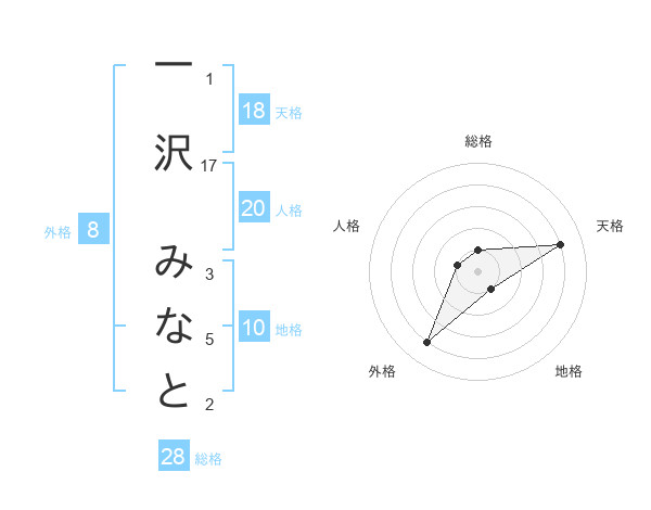一沢 みなとさんを姓名の画数から五運を鑑定