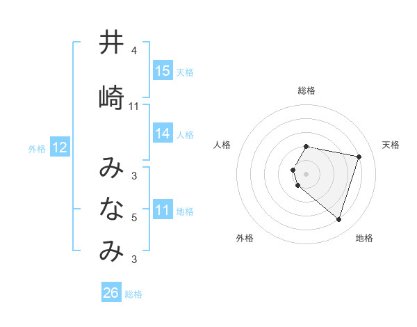 井崎 みなみさんを姓名の画数から五運を鑑定