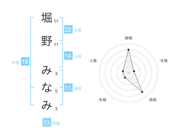 堀野 みなみさんを姓名の画数から五運を鑑定