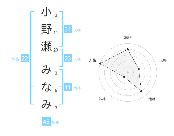 小野瀬 みなみさんの総格は45画の4点!