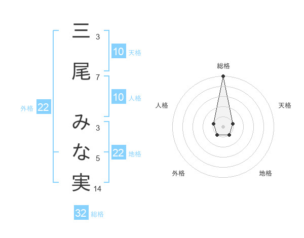 三尾 みな実さんを姓名の画数から五運を鑑定