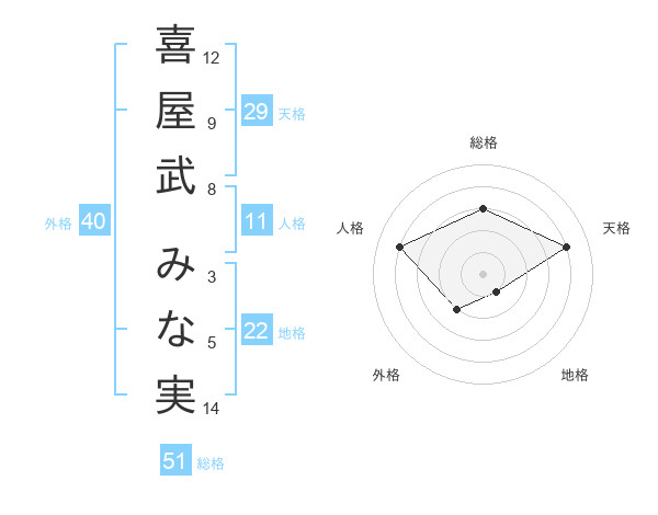 喜屋武 みな実さんを姓名の画数から五運を鑑定