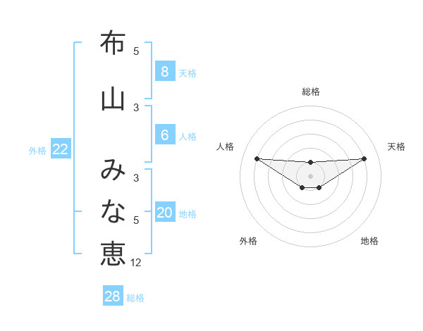 布山 みな恵さんを姓名の画数から五運を鑑定
