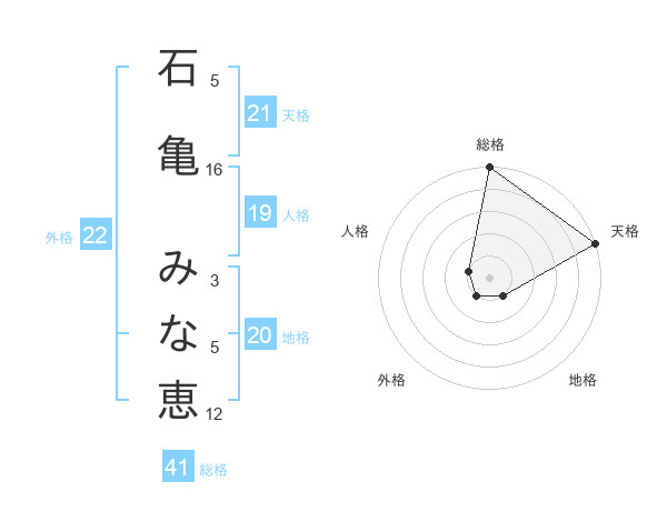 石亀 みな恵さんを姓名の画数から五運を鑑定