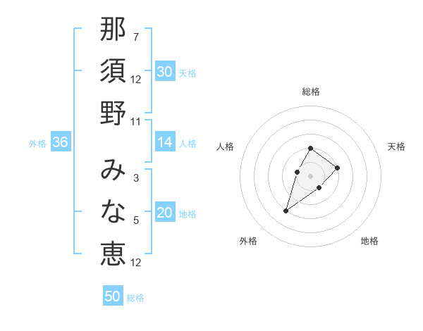 那須野 みな恵さんを姓名の画数から五運を鑑定