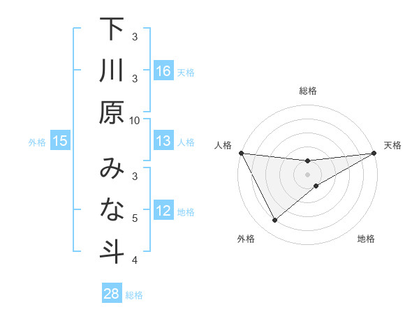 下川原 みな斗さんを姓名の画数から五運を鑑定