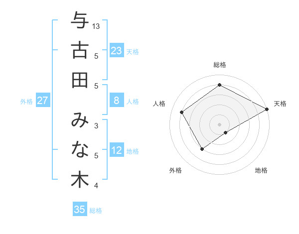 与古田 みな木さんを姓名の画数から五運を鑑定