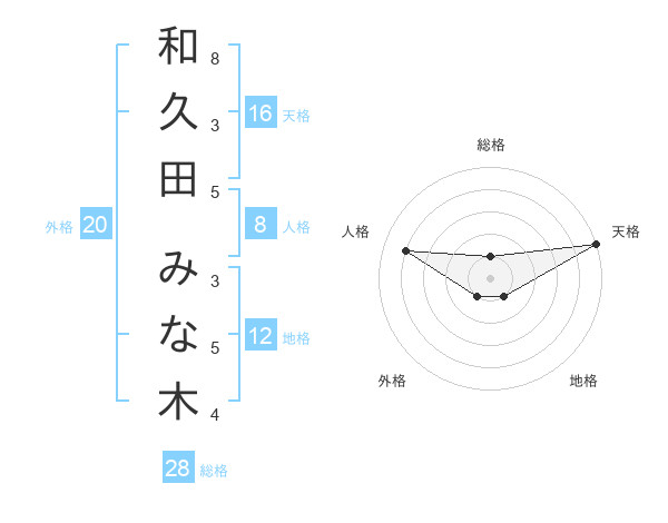 和久田 みな木さんの外格は20画の1点!