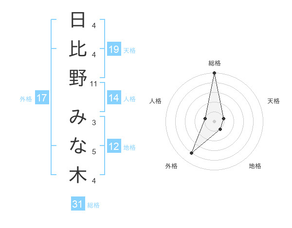 日比野 みな木さんを姓名の画数から五運を鑑定