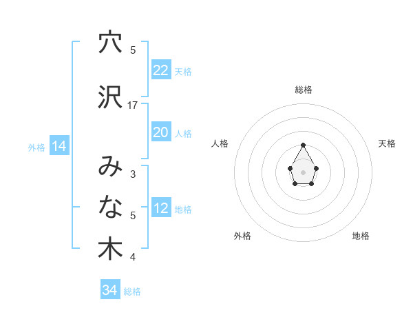 穴沢 みな木さんの天格は22画の1点!