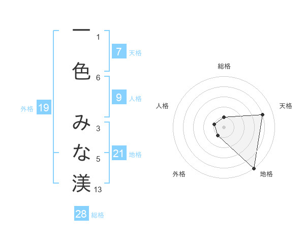 一色 みな渼さんの総格は28画の1点