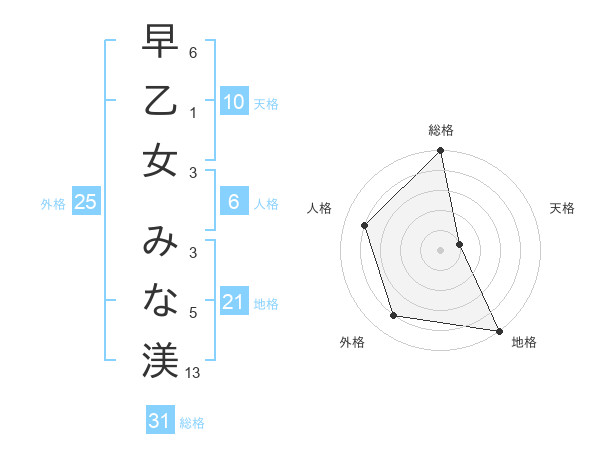 早乙女 みな渼さんを姓名の画数から五運を鑑定
