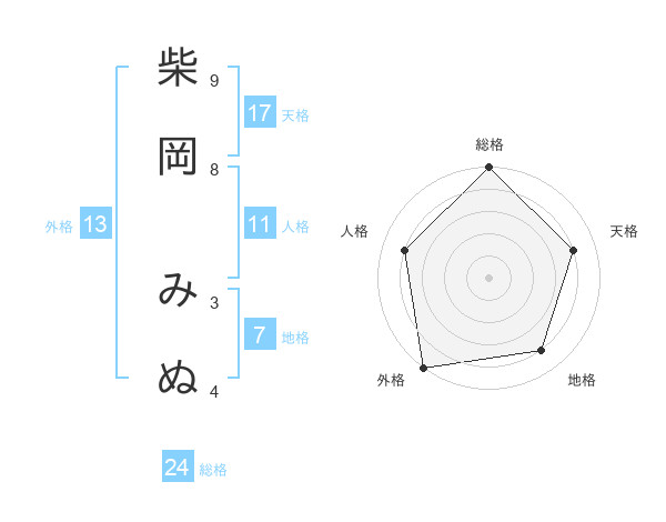 柴岡 みぬさんの外格は13画の5点!