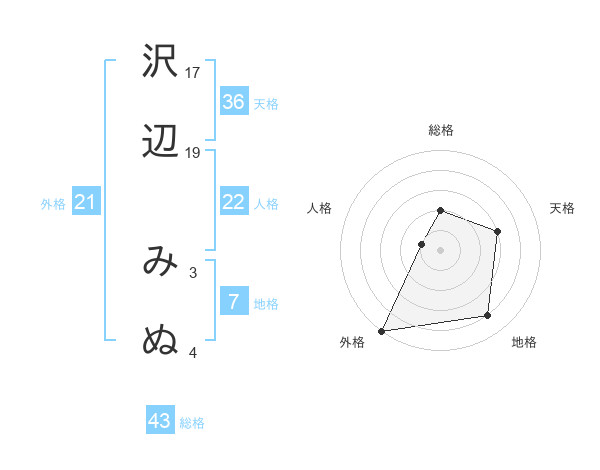 沢辺 みぬさんを姓名の画数から五運を鑑定