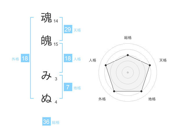 魂魄 みぬさんを姓名の画数から五運を鑑定