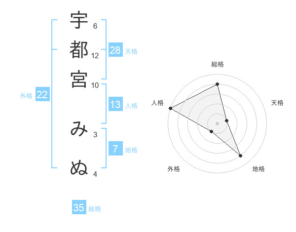 宇都宮 みぬさんを姓名の画数から五運を鑑定