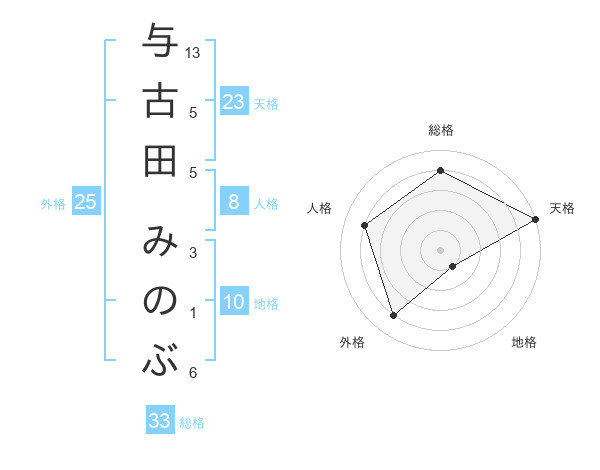与古田 みのぶさんを姓名の画数から五運を鑑定