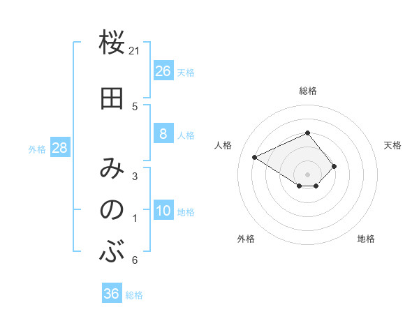桜田 みのぶさんの総格は36画の3点!