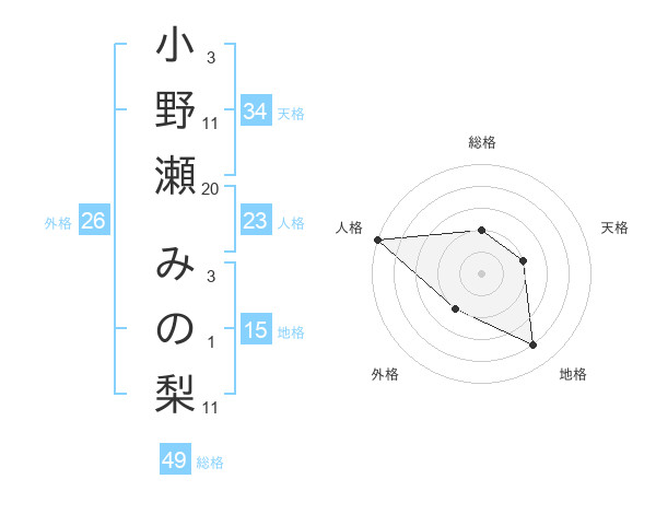 小野瀬 みの梨さんを姓名の画数から五運を鑑定