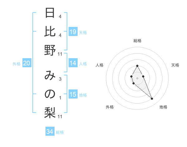日比野 みの梨さんを姓名の画数から五運を鑑定
