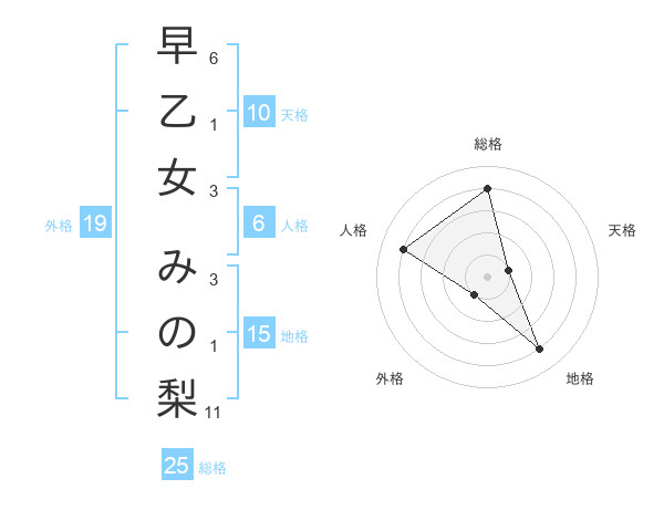早乙女 みの梨さんを姓名の画数から五運を鑑定