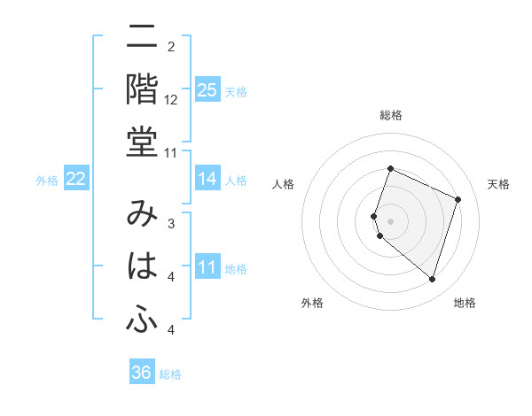 二階堂 みはふさんを姓名の画数から五運を鑑定