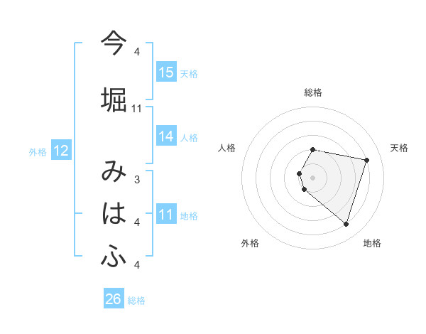 今堀 みはふさんを姓名の画数から五運を鑑定