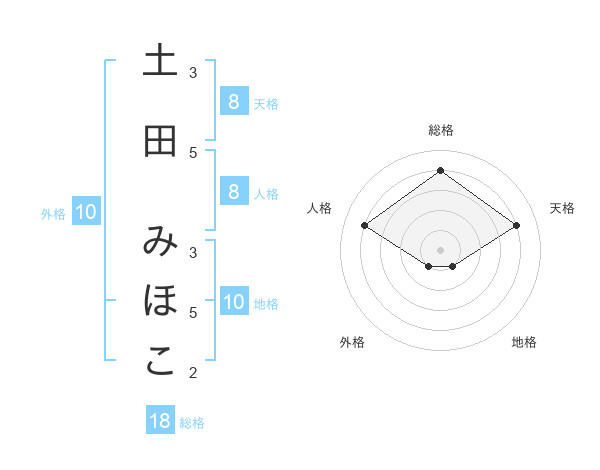 土田 みほこさんの天格は8画の4点!