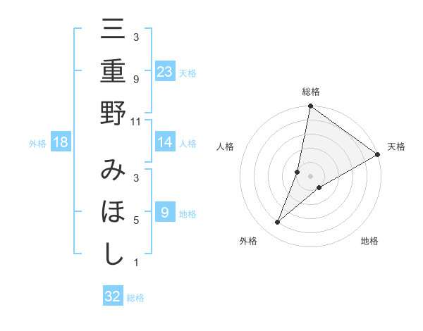 三重野 みほしさんを姓名の画数から五運を鑑定