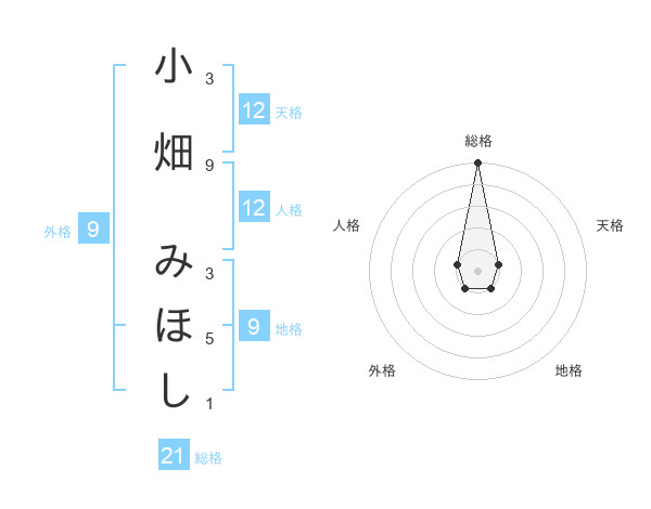 小畑 みほしさんを姓名の画数から五運を鑑定