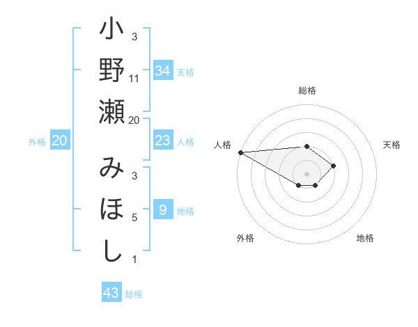 小野瀬 みほしさんを姓名の画数から五運を鑑定