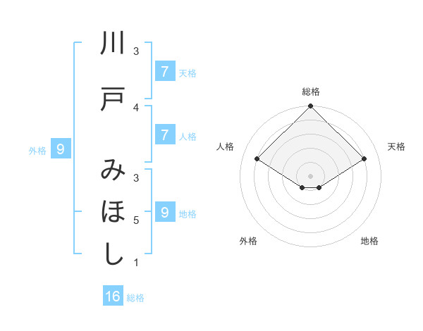 川戸 みほしさんを姓名の画数から五運を鑑定
