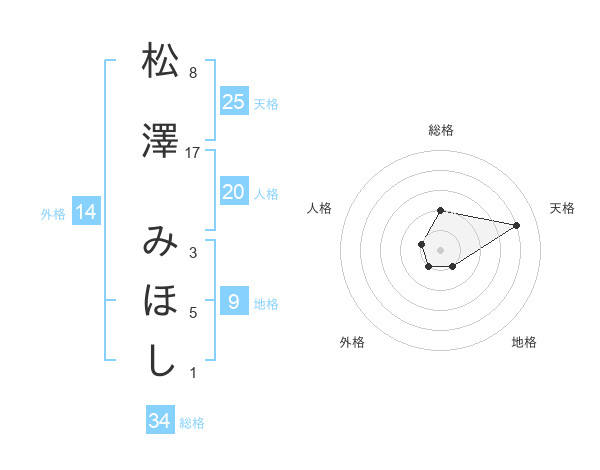 松澤 みほしさんを姓名の画数から五運を鑑定