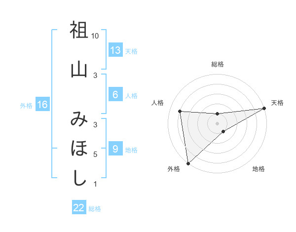 祖山 みほしさんの外格は16画の5点!