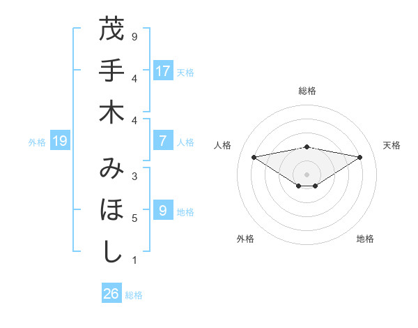 茂手木 みほしさんの天格は17画の4点!