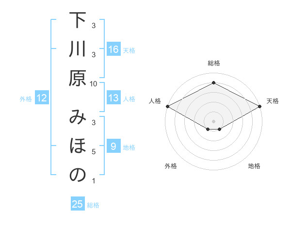 下川原 みほのさんの総格は25画の4点!