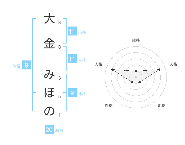 大金 みほのさんの総格は20画の1点!