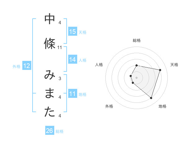 中條 みまたさんの天格は15画の4点!