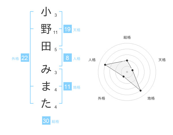 小野田 みまたさんの総格は30画の2点!