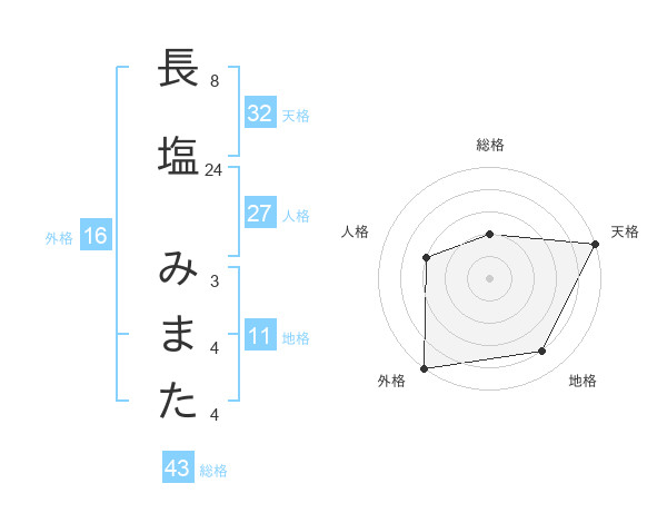 長塩 みまたさんの総格は43画の2点!