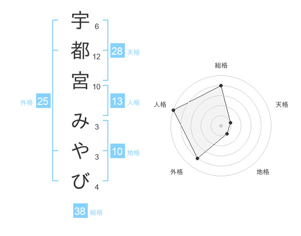 宇都宮 みやびさんの総格は38画の4点!