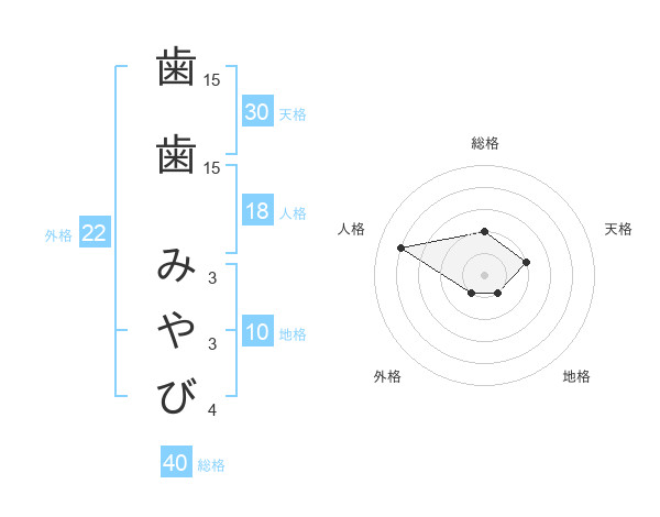 歯歯 みやびさんの外格は22画の1点!