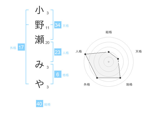小野瀬 みやさんを姓名の画数から五運を鑑定