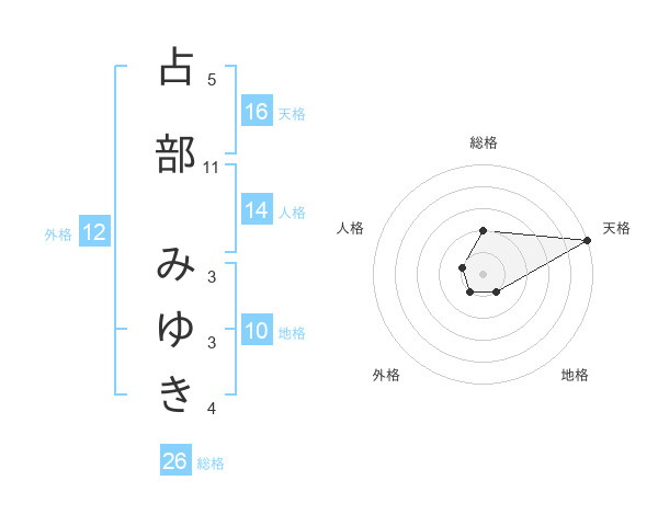 占部 みゆきさんの天格は16画の5点!