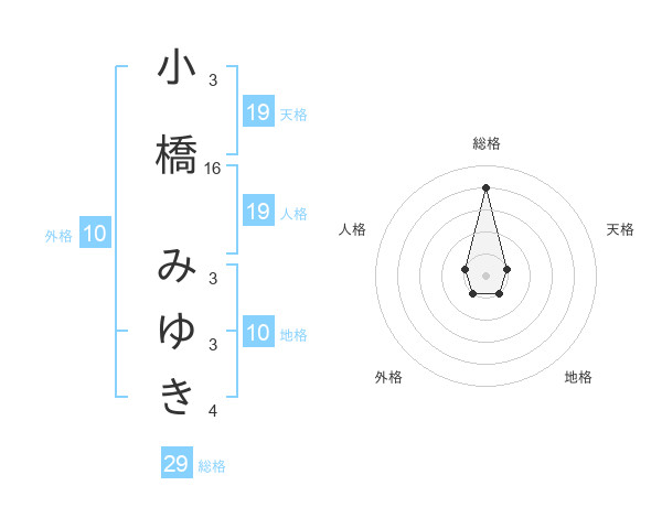 小橋 みゆきさんを姓名の画数から五運を鑑定