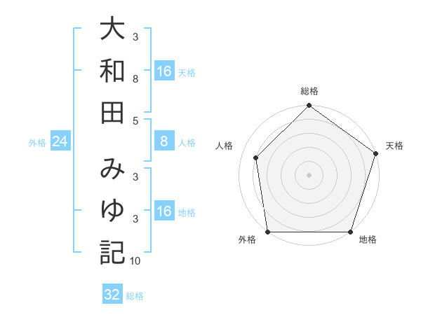 大和田 みゆ記さんの総格は32画の5点