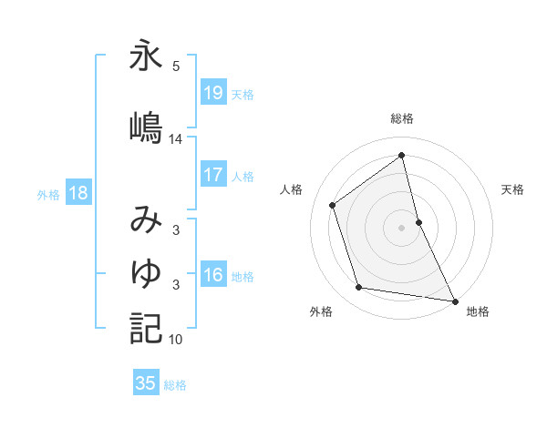 永嶋 みゆ記さんを姓名の画数から五運を鑑定