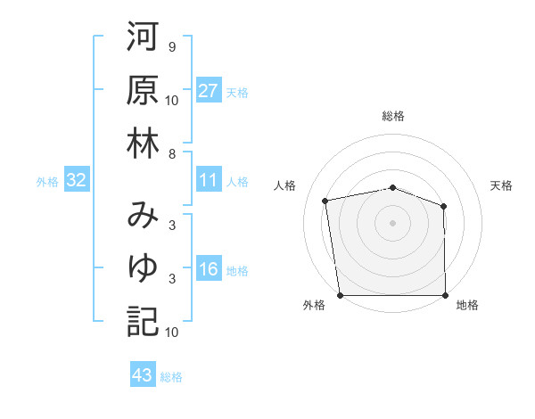 河原林 みゆ記さんを姓名の画数から五運を鑑定