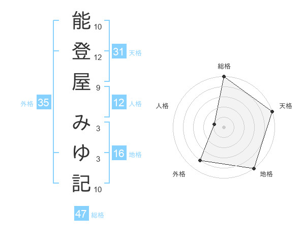 能登屋 みゆ記さんを姓名の画数から五運を鑑定