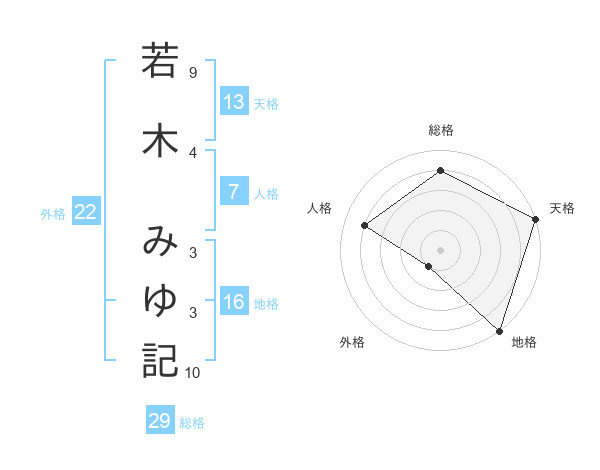 若木 みゆ記さんを姓名の画数から五運を鑑定